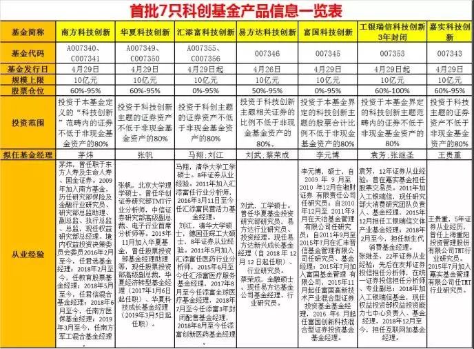 答:首批是7只基金,后續(xù)還有多只科創(chuàng)主題基金在路上。數(shù)據(jù)顯示,目前在基金名字中有“科技”、“科創(chuàng)”、“科創(chuàng)板”等申報(bào)的新基金超過80只,類型也更多元化。